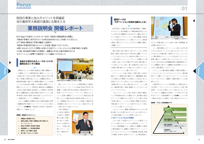 また、ご出席いただいた皆様に職場の活性化などに役立ててもらうため、枝川義邦早稲田大学教授に「モチベーションを高める脳のしくみ」と題し講演をお願いしました。